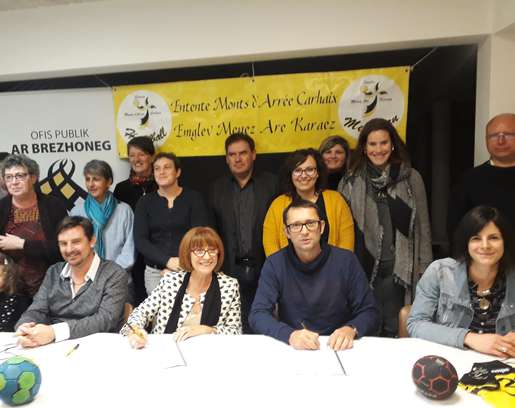 Dalc’het e oa bet al lid-sinañ e Karaez e Ti ar Vro d’ar Gwener 27 a viz Here 2017 dirak an it. Lena Louarn, besprezidantez ar C’huzul-rannvro karget eus yezhoù Breizh ha prezidantez an Ofis Publik, an ao. Marc Guilloux, prezidant an EMAK hag izili burev ar gevredigezh.