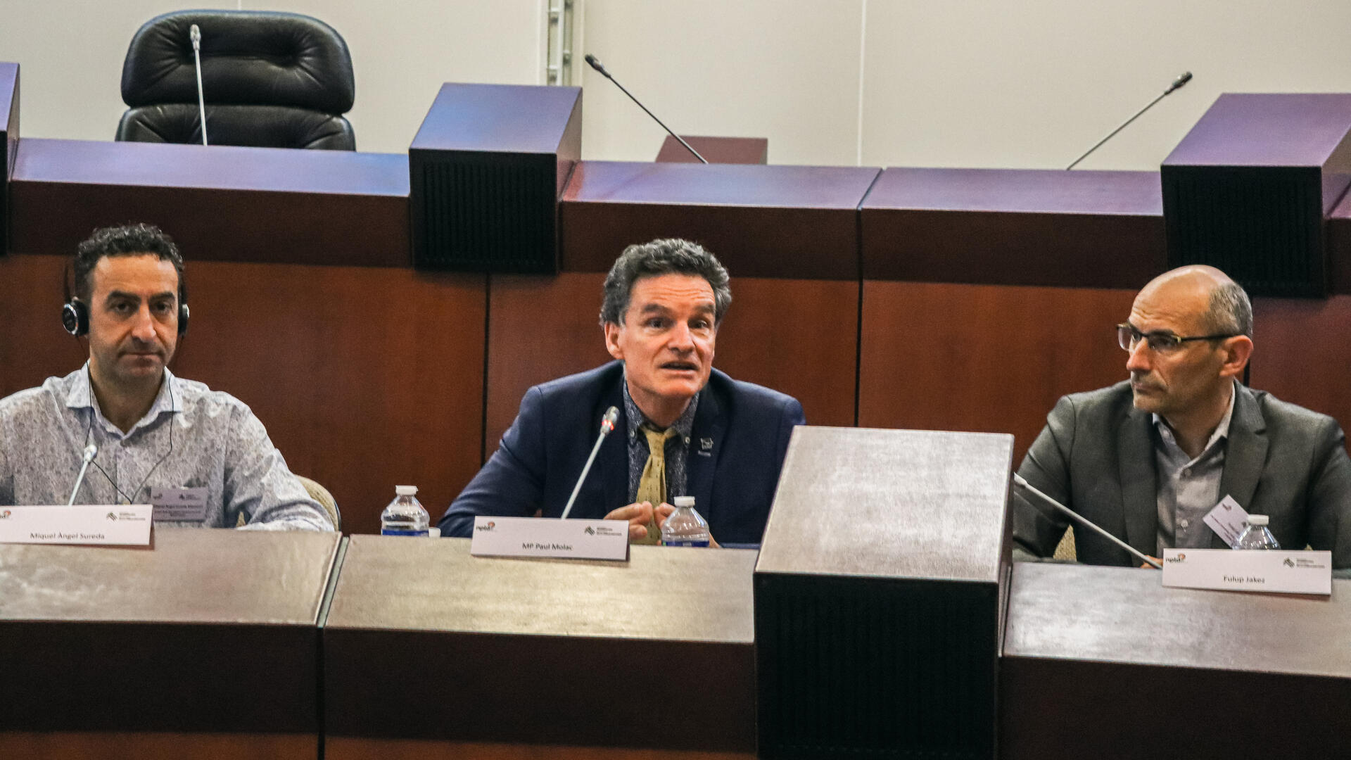 Miquel Àngel Sureda, prezidant an NPLD, Paul Molac, prezidant an OPAB ha Fulup Jakez, rener an OPAB.
